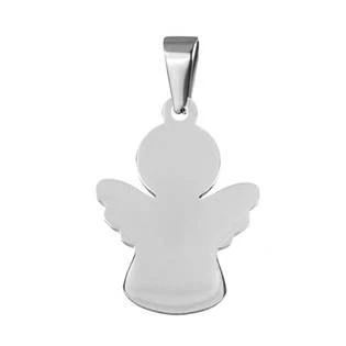 Ocelový přívěšek destička ve tvaru andělíčka Přední i zadní strana přívěšku má lesklou povrchovou úpravu Ocelový přívěšek je vyroben z chirurgické oceli s jakostním označením 316L Parametry materiál chirurgická ocel povrchová úprava lesklá rozměr přívěšku 18 x 25 mm celková výška přívěšku 30 mm