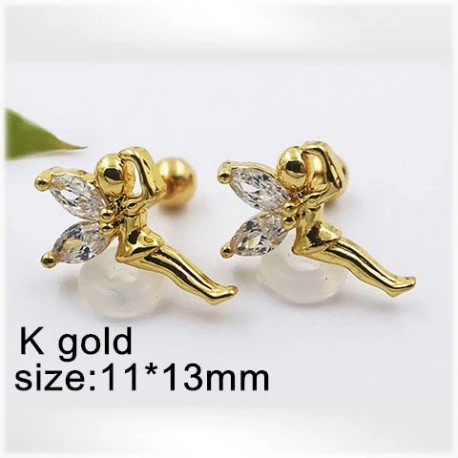 Krásné vílí náušnice ze zlacené chir. oceli Hmotnost: 2.2 g, Rozměry: 11*13mm, Zlatá PVD vrstva. Křidélka jsou osazena kubickými zirkonky. Barva zirkonků: krystal. Zapínání na šroubovací kuličky. Kód: 3NE26432