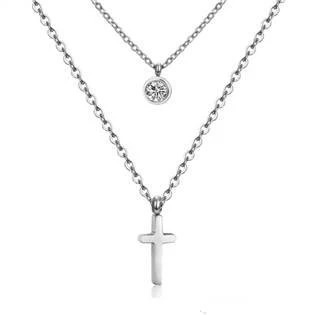 Dvojitý dámský ocelový náhrdelník se zavěšenými přívěšky - křížek a zirkon Delší náhrdelník má délku 45 cm a délka kratšího je 20 cm Náhrdelník je vyroben z chirurgické oceli 316L a má lesklou povrchovou úpravu Parametry materiál chirurgická ocel povrchová úprava lesklá délka řetízku 45 cm rozměr přívěšku 6x15 a 6x9 mm šíře řetízku 2 mm