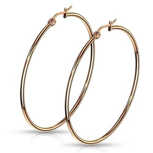 Ocelové náušnice kruhy zlacené Náušnice jsou vyrobeny z chirurgické oceli s jakostním označením 316L Parametry materiál chirurgická ocel povrchová úprava růžové zlato průměr náušnic 55 mm tloušťka náušnic 2 mm