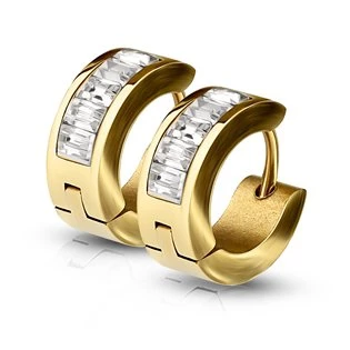 Ocelové náušnice kroužky Náušnice jsou vyrobené z chirurgické oceli 316L Parametry materiál chirurgická ocel povrchová úprava žluté zlato průměr náušnic 13 mm šíře náušnic 5 mm