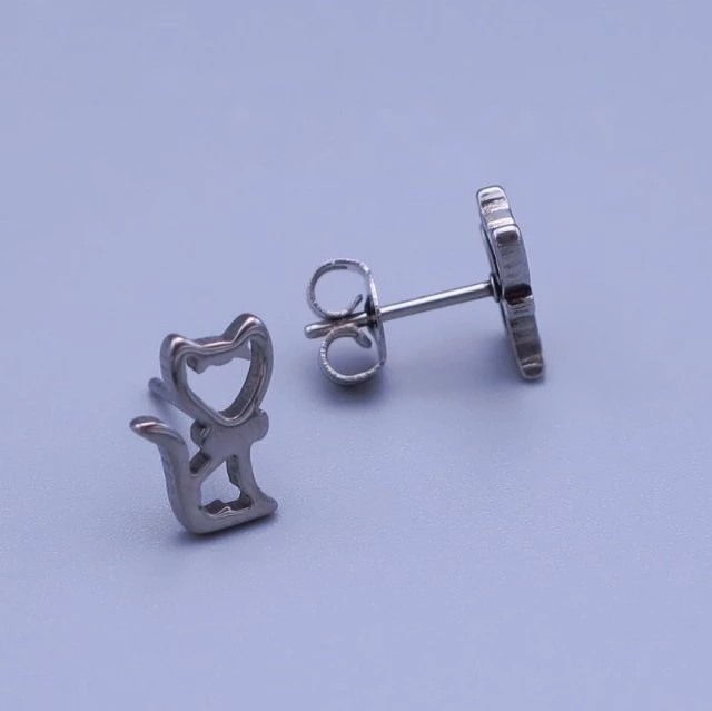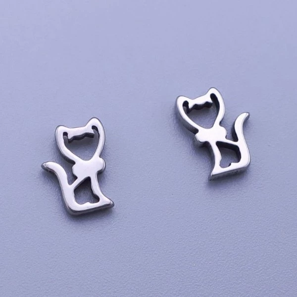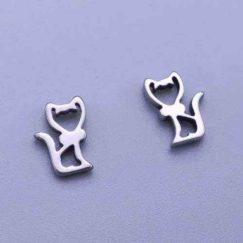 Náušnice z leštěné chirurgické oceli kočičky. Velikost 9x6mm Zapínání na puzetu. 1362