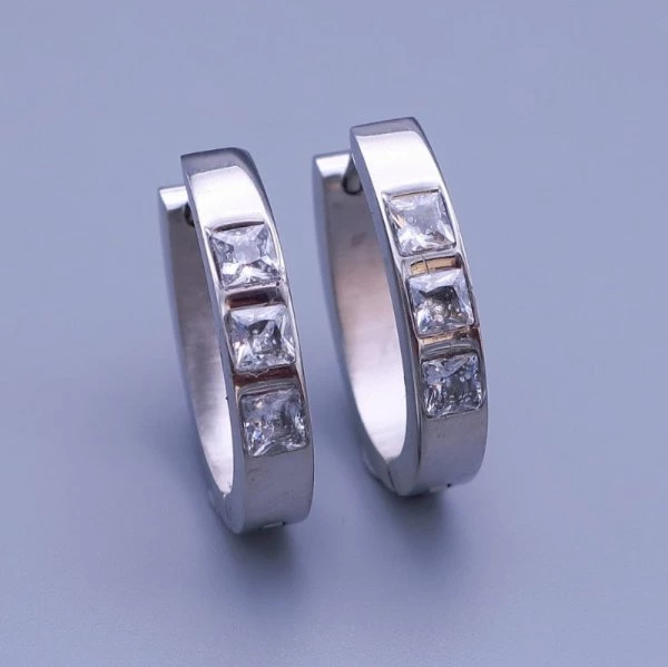 Náušnice z leštěné chirurgické oceli oválky jsou z přední strany zdobené čirými zirkony. Délka náušnic 20mm Šířka 4mm. Chirurgická ocel je vhodná pro alergiky na běžné kovy. 1330