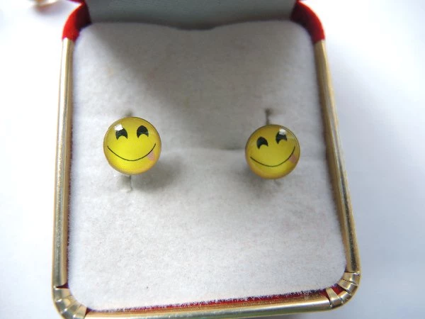 Oblíbené náušnice Smajlíci ve velikosti 9x9mm Zapínání na puzetku.