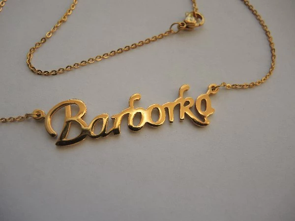 Zlacený náhrdelník z chirurgické oceli se jménem BARBORKA Rozměry řetízku i se jménem 48cm Rozměry jména 5x1.1cm Hmotnost: 4.6g, PVD pozlacení 3PP4672