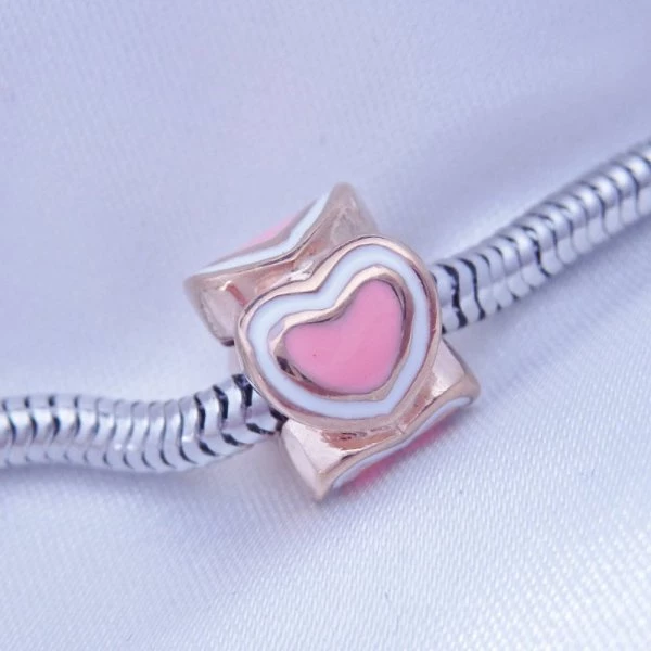 Zlacený barevný korálek z chirurgické oceli. Kombinace barev: růžová a bílá. Zlacení (gold rose) - růžové zlato Průměr: 11mm Šířka: 8mm Vnitřní průměr: 5m K04