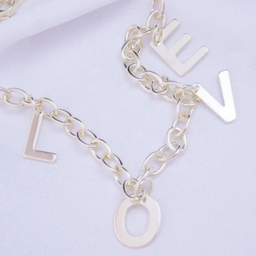 Zlacený náramek z chirurgické oceli s přívěsky LOVE