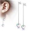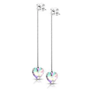Visací ocelové náušnice s broušenými korálky ve tvaru srdíček Náušnice jsou vyrobeny z chirurgické oceli s jakostním označením 316L Parametry materiál chirurgická ocel povrchová úprava lesklá typ uzávěru provlékací výška náušnic 81,2 mm Velikost srdíčka 10mm