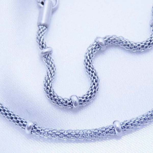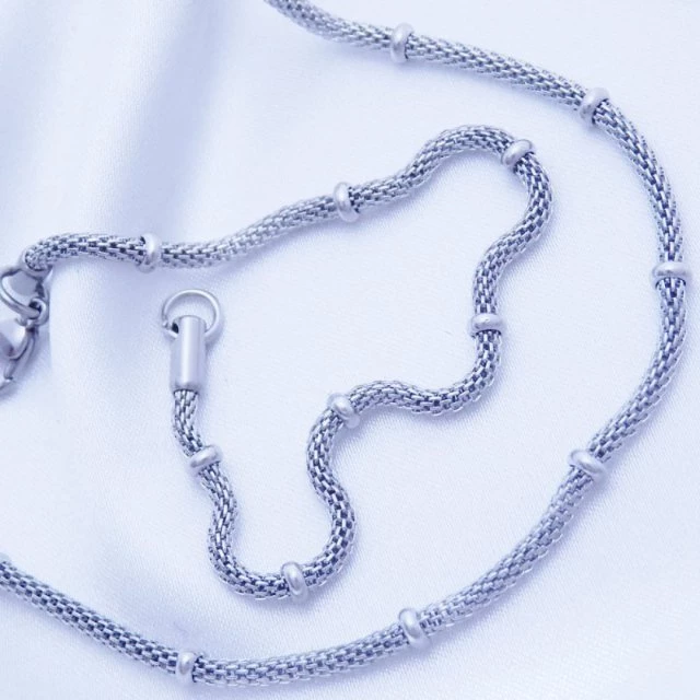 Dámská jemná souprava z leštěné chirurgické oceli se skládá z náramku o délce 18cm a řetízku 45cm . Šířka : 2,5mm Chirurgická ocel je vhodná pro alergiky na běžné kovy . NA046