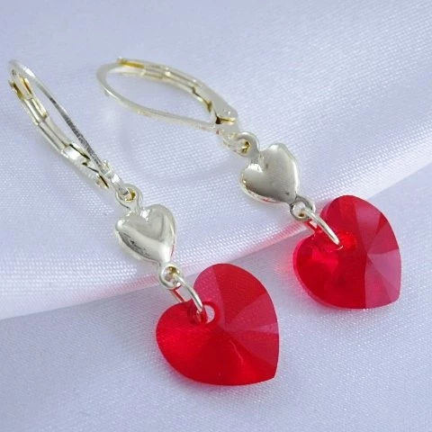 Krásné náušnice Swarovski srdíčka o velikosti 10mm v barvě Light Siam ( červená ). Zapínání z chirurgické oceli je opatřeno povrchovou úpravou zlacení 14kar Zapínáni se srdíčkem : Celková délka náušnic se zapínáním - 33mm Náušničky jsou jemné a hodí se také pro slečny od 7 let Chirurgická ocel je vhodná pro alergiky na běžné kovy .