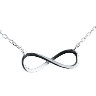 Stříbrný náhrdelník se zavěšeným přívěškem ve tvaru ležaté osmičky - nekonečna Náhrdelník je vyroben ze stříbra s jakostním označením 925-1000 s povrchovou úpravou rhodium Rhodium patří mezi drahé kovy, patřící do skupiny platinových, chrání stříbro před černáním a zvyšuje lesk sříbrných šperků. Náhrdelník je dodáván v papírové dárkové krabičce Parametry materiál stříbro (Ag 925-1000) povrchová úprava rhodium rozměr přívěšku 17 x 5 mm délka náhrdelníku 42 cm + 3 cm hmotnost 1,76