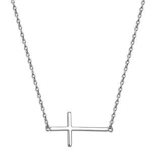 Jemný stříbrný řetízek s malým křížkem umístěným naležato Šperk je vyroben ze stříbra s jakostním označením 925-1000 s povrchovou úpravou rhodium Rhodium patří mezi drahé kovy, patřící do skupiny platinových a chrání stříbro před černáním, zvyšuje lesk náhrdelníku. Parametry materiál stříbro (Ag 925-1000) povrchová úprava rhodium rozměr kříže 11 x 21 mm délka náhrdelníku 36 cm + 3 cm hmotnost 2,10 g