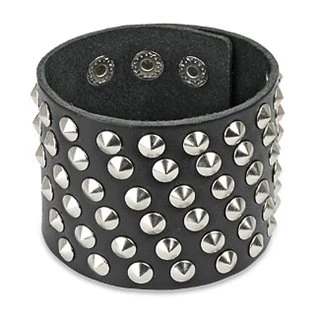 Kožený náramek NR1011 Kožený náramek zdobený kulatými cvoky Náramek je vyroben z přírodní kůže Parametry materiál přírodní kůže barva černá obvod náramku zapnutý 19 - 22,5, cm šíře náramku 50 mm