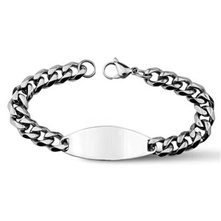 Pánský ocelový náramek Ocelový náramek je vyroben z chirurgické oceli s jakostním označením 316L materiál chirurgická ocel povrchová úprava lesklá délka náramku 21 cm šíře náramku 11 mm rozměr destičky 18 x 40 mm