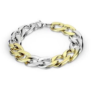 Pánský ocelový náramek se zlacenými prvky Náramek je vyroben z chirurgické oceli s jakostním označením 316L. materiál chirurgická ocel povrchová úprava lesklá, žluté zlato délka náramku 19,5 cm šíře náramku 12 mm