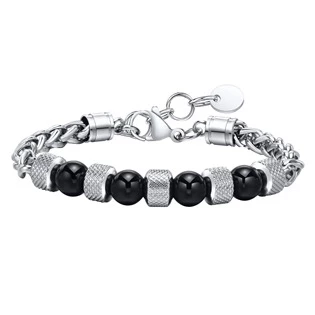 Pánský ocelový náramek kombinovaný s černými kuličkami
