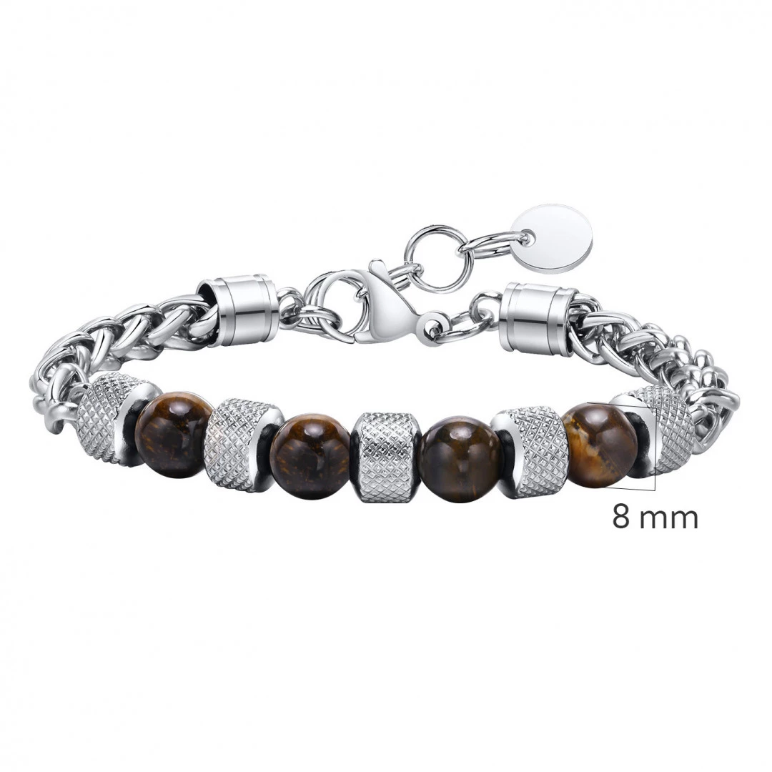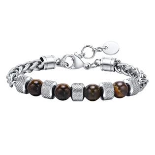 Pánský ocelový náramek kombinovaný s minerálem tygří oko