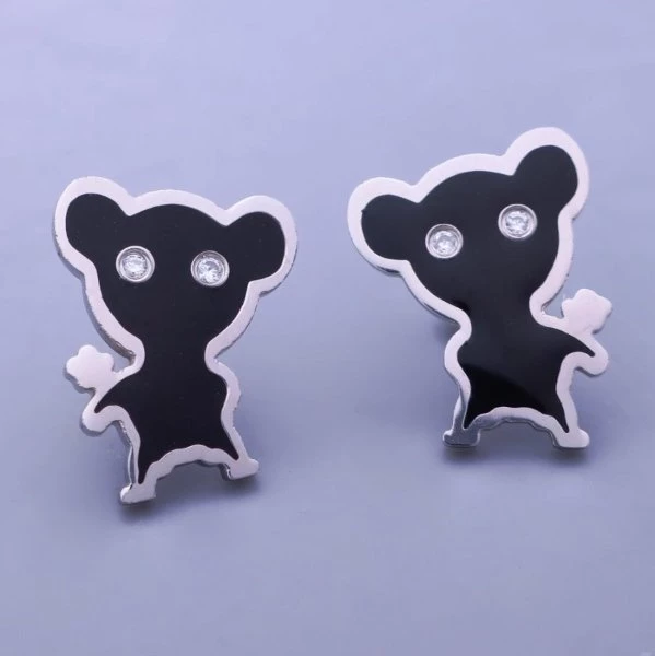 Náušnice z leštěné chirurgické oceli myšky, jsou zdobené černou lesklou výplní a čirými zirkony. Velikost 17x13mm. Zapínání na puzetu. 22358