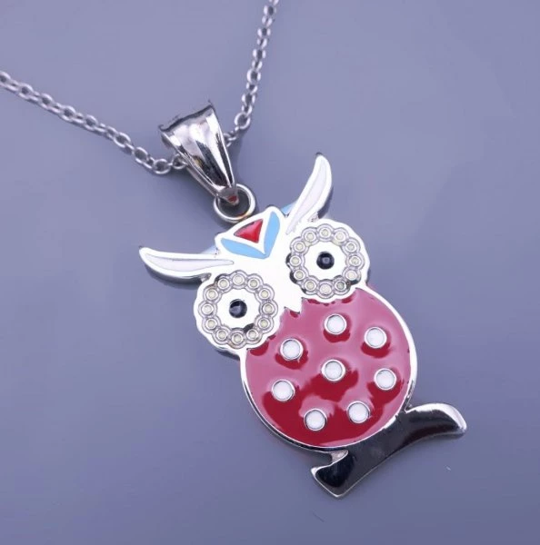Přívěsek z leštěné chirurgické oceli sovička. Velikost 30x20mm. Součásti přívěsku je ocelový řetízek, který si můžete vybrat ze dvou šířek 2mm, 3mm. Délka je na výběr od 40-45-50-55-60-65-70cm 22288