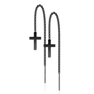 Provlékací ocelové náušnice se zavěšenými křížky Náušnice jsou vyrobeny z chirurgické oceli s jakostním označením 316L Parametry materiál chirurgická ocel povrchová úprava černá typ uzávěru provlékací, visací rozměr křížků 8 x 12 mm Celková délka i s křížkem 85mm