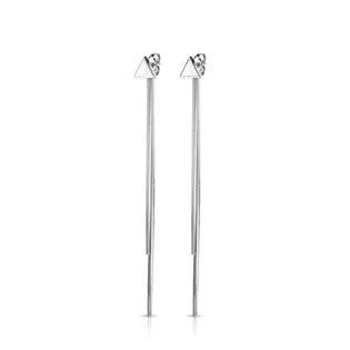 Visací ocelové náušnice dekorované bílými trojúhelníky Náušnice jsou vyrobeny z chirurgické oceli s jakostním označením 316L Parametry materiál chirurgická ocel povrchová úprava lesklá typ uzávěru puzeta, visací rozměry celková délka 65mm