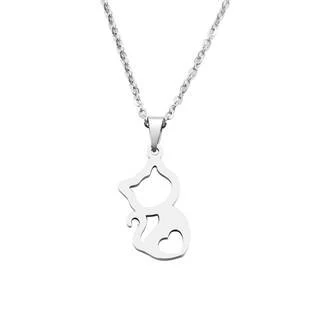 Dámský vhodný i jako dětský ocelový náhrdelník s přívěškem ve tvaru kočičky Šperk je vyroben z chirurgické oceli 316L Parametry materiál chirurgická ocel povrchová úprava lesklá délka náhrdelníku 45cm Rozměr kočičky 20x12mm