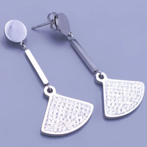 Dámské visací náušnice z chirurgické oceli, náušnice jsou zdobeny trojúhelníky s čirými zirkony. Celková délka náušnic je 45mm. Velikost trojúhelníku 20x14mm, průměr kolečka je 8mm. Zapínání náušnic je na puzetu. Šperky z chirurgické oceli jsou vhodné pro alergiky na běžné kovy. 22175