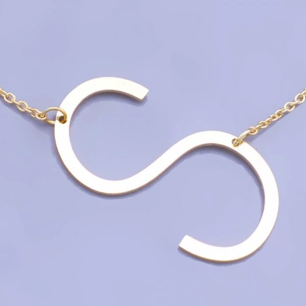 Zlacená písmeno z chirurgické oceli. Písmena zlatíme v ČR galvanizací 14kar. zlatem. Písmena které ve zlacené variantě nabízíme jsou A, B, D, E, H, I, J, K, L, N, P, R, S, V, Z Velikost písmen je 35x20mm, a jsou zavěšeny na zlaceném řetízku z chirurgické oceli o šířce 1,2mm a nastavitelné délce 45cm do 50cm. Zlacené šperky z chirurgické oceli není vhodné namáčet do saponátu, slané vody a jiných agresivních látek... PP01