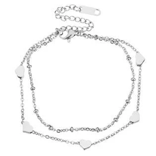 Dvojitý dámský ocelový náramek zdobený 5ti navlečenými srdíčky Ocelový náramek je vyroben z chirurgické oceli s jakostním označením 316L Parametry materiál chirurgická ocel povrchová úprava lesklá délka náramku 16 cm + 5 cm rozměr srdíček 4 x 5 mm