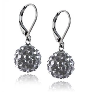 Ocelové náušnice kuličky - šedé krystaly