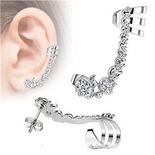 Náušnice s klipem a čirými zirkony, levé ucho