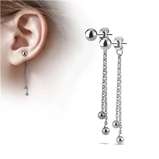 Ocelové náušnice řetízkové Náušnice jsou vyrobeny z chirurgické oceli 316L Parametry materiál chirurgická ocel povrchová úprava lesklá průměr kuliček 5 mm