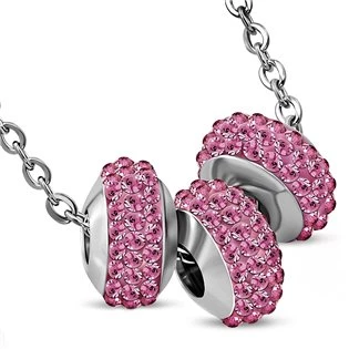 Ocelový řetízek se zavěšenými přívěšky ve tvaru korálků zdobených kamínky růžové barvy Náhrdelník je vyroben z chirurgické oceli 316L Parametry materiál chirurgická ocel povrchová úprava lesklá průměr přívěšku 10 mm šíře přívěšku 6 mm délka náhrdelníku 42 cm