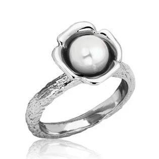 Ocelový prsten zdobený syntetickou perličkou Prsten je vyroben z chirurgické oceli 316L Parametry materiál chirurgická ocel povrchová úprava lesklá druh kamene perla druh perly syntetická rozměr kytičky 12 mm rozměr perličky 7 mm Velikost 55