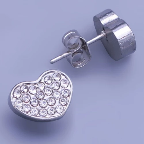 Náušnice z leštěné chirurgické oceli srdíčka jsou zdobené čirými zirkony. Velikost 11x8mm. Zapínání na puzetu. 2292