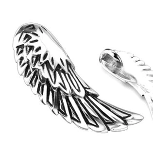 Ocelový přívěšek ve tvaru andělského křídla Ocelový přívěšek je vyroben z chirurgické oceli s jakostním označením 316L Parametry materiál chirurgická ocel povrchová úprava černá, lesklá rozměr přívěšku (šíře x délka) 46 x 17 mm