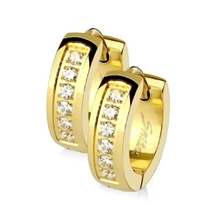 Zlacené ocelové náušnice - kroužky se zirkony