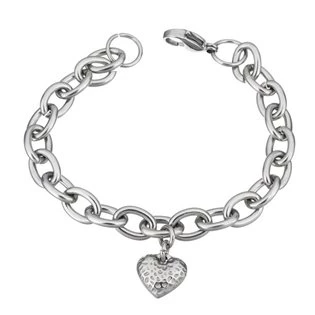 Dámský ocelový náramek zdobený srdíčkem Ocelový náramek je vyroben z chirurgické oceli s jakostním označením 316L Parametry materiál chirurgická ocel povrchová úprava lesklá délka náramku 18 cm rozměr srdíčka 11,5 x 12,5 mm šíře náramku 8 mm