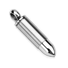 Ocelový přívěšek - patrona Ocelový přívěšek je vyroben z chirurgické oceli s jakostním označením 316L Parametry materiál chirurgická ocel povrchová úprava lesklá, matná rozměr 8 x 30 mm