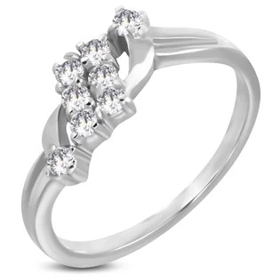 Ocelový prsten s čirými zirkony Prsten je vyroben z chirurgické oceli 316L Parametry materiál chirurgická ocel povrchová úprava lesklá druh kamene zirkon Vyberte variantu: 50 52 57 60