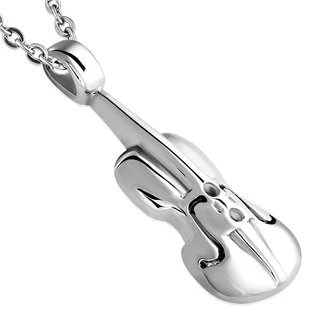 Ocelový přívěšek ve tvaru houslí Přívěšek je vyroben z chirurgické oceli 316L Parametry materiál chirurgická ocel povrchová úprava lesklá rozměr přívěšku 17 x 43 mm