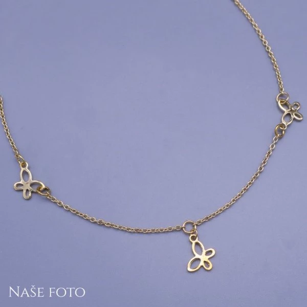 Krásný dámský řetízek s motýlky z pozlacení chirurgické oceli (vhodný také pro děti)