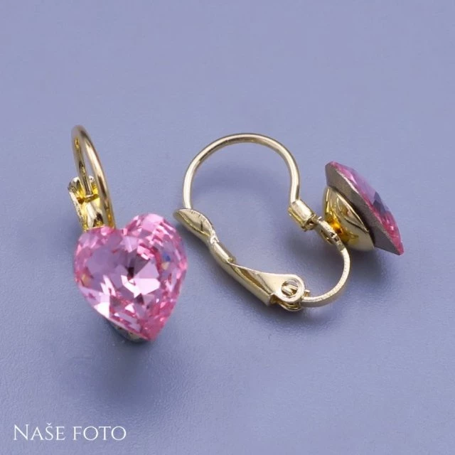 Nádherná Swarovski srdíčková souprava náušnic a přívěsku s řetízkem. Souprava je vyrobená z pozlacené chirurgické oceli a je zdobená broušenými růžovými kamínky Swarovski ve tvaru srdíčka. Kombinace světlounce růžové a zlaté barvy vypadá velice luxusně a jako celek tato sada vypadá elegentně a decentně. Je vhodná pro ženy všech věkových kategorií, ale díky své jemnosti a menším rozměrům je také vhodným šperkem pro děti. Zapínání náušnic je jednoduché, pohodlné na tzv. dámský patent (klapku) a tedy nikde tlačí ani nepíchá. Šperky z chirurgické oceli jsou vhodné pro osoby s alergiemi na běžné kovy. Zapínání náušnic: dámský patent (klapka) Rozměry srdíčka: 9mm x 7mm Šířka řetízku: 1mm Délka řetízku: volitelná od 4045-50cm 8032