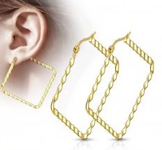 Zlacené ocelové náušnice - čtverce 40 mm