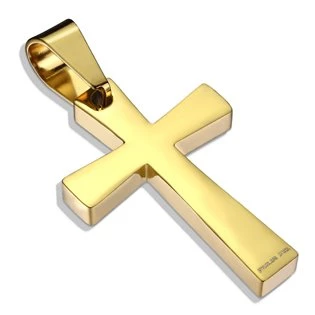 Ocelový přívěšek ve tvaru jednoduchého kříže Přívěšek je vyroben z chirurgické oceli 316L s jakostním označením 316L Parametry materiál chirurgická ocel povrchová úprava žluté zlato rozměr přívěšku 30 x 30 mm tloušťka přívěšku 3 mm