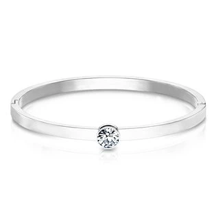 Otevírací ocelový náramek zdobený kulatým zirkonem čiré barvy Náramek je vyrobený z chirurgické oceli 316L s lesklou povrchovou úpravou Parametry materiál chirurgická ocel povrchová úprava lesklá druh kamene zirkon šíře náramku 4 mm vnitřní rozměr náramku 58 mm
