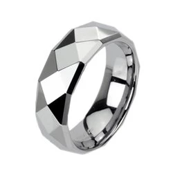 Vysoceleštěný wolframový prsten zdobený broušenými ploškami Wolfram je v současnosti nejtvrdší a nejodolnější kov, používaný k výrobě šperků. Wolframu je 10 krát tvrdší než 18ti karátové zlato a… 5 krát tvrdší než ocel … a 4 krát tvrdší než Titan. Stupeň tvrdosti wolframu se pohybuje mezi 8-9 na stupnici tvrdosti (diamanty mají tvrdost 10 - nejvyšší na této stupnici). Proč je to toto důležité? Vysoká tvrdost wolframu zaručuje trvalý lesk šperků a jeho absolutní odolnost proti poškrábání. materiál karbid wolframu velikost prstenu 67