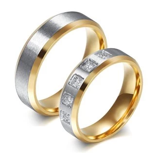 Zlacené snubní prsteny z chirurgické oceli Ocelové prsteny jsou vyrobeny z chirurgické oceli s jakostním označením 316L materiál chirurgická ocel povrchová úprava matná, žluté zlato šíře dám. prstenu 6 mm šíře pán. prstenu 6 mm druh kamene zirkon typ prstenu snubní Dámský zlacený ocelový prsten - vyberte variantu: 49 52 55 57 59 Pánský zlacený ocelový prsten - vyberte variantu: 59 62 65 67