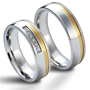 Ocelové snubní prsteny zdobené zlacený pruhem. Dámský prsten je osazen 7mi zirkony čiré barvy Prsteny jsou vyrobeny z chirurgické oceli s jakostním označením 316L. Tento druh oceli nekoroduje (snubní prsteny tedy nerezaví), je antialergenní a splňuje náročné parametry pro šperky přicházející do styku s pokožkou, které jsou dány normami EU materiál chirurgická ocel povrchová úprava matná, žluté zlato šíře dám. prstenu 5,5 mm šíře pán. prstenu 5,5 mm druh kamene zirkon tloušťka prstenů 1,8 mm typ prstenu snubní Dámský snubní prsten se zirkony - vyberte variantu: 47 49 50 51 52 53 55 57 59 Pánský snubní prsten - vyberte variantu: ? 55 57 59 61 62 63 65 67 69 V případě zájmu upřesněte velikosti prstenů do poznámky