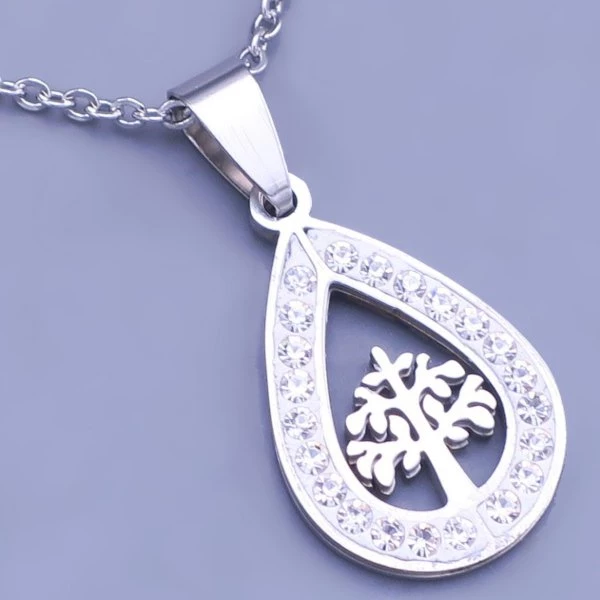 Přívěsek z leštěné chirurgické oceli slza je zdoben symbolem strom života. Po celém obvodu je zdoben čirými zirkony. Velikost 23x15mm. Součástí přívěsku je ocelový řetízek o šířce 2mm. Délka na výběr od 40-45-50-55-60-65-70cm 2199